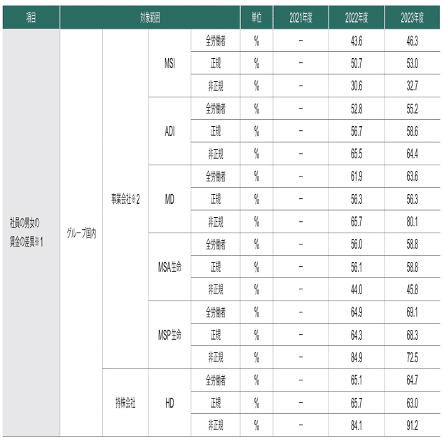 ちなみに、あいおいニッセイ同和損保の正規雇用労働者の男女の賃金格差は58.6%です。